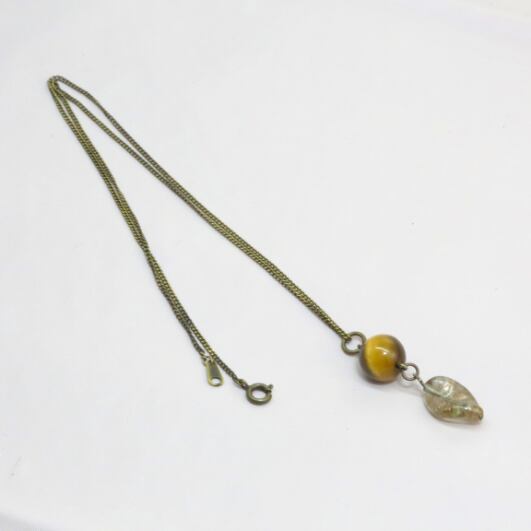 金運・仕事運アップのパワーストーンとして知られるタイガーアイと、美しい輝きを放つベネチアンビーズを組み合わせたネックレス。アンティーク調のチェーンが、上品で落ち着いた雰囲気を演出します。