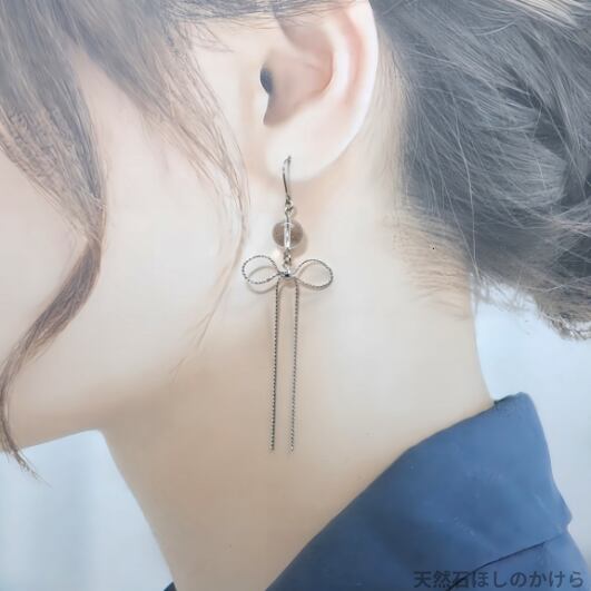 水晶とリボンのピアス/イヤリング(805)【浄化・癒し・万能】