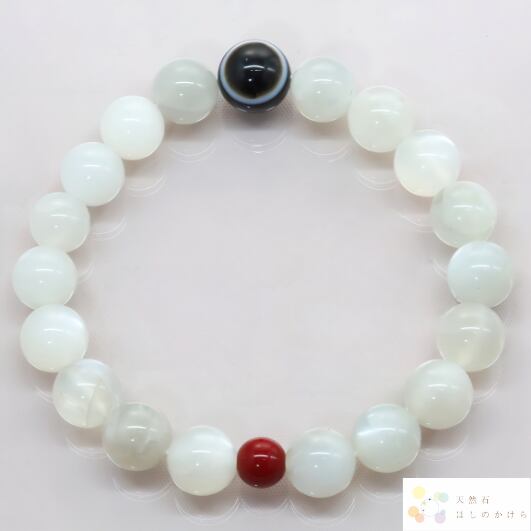ムーンストーンと天眼石・レッドコーラルのお守りブレスレット(826)【魔除け・浄化・幸運』