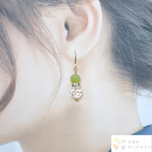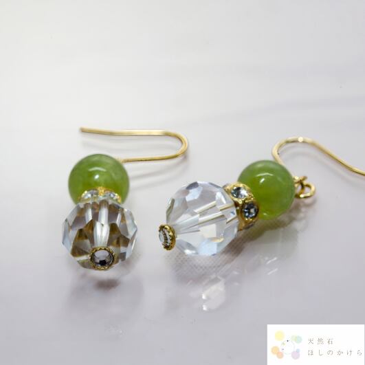 ペリドットとスワロフスキーの煌めきピアス/イヤリング(835)【幸福・パートナーとの愛・太陽のエネルギー】