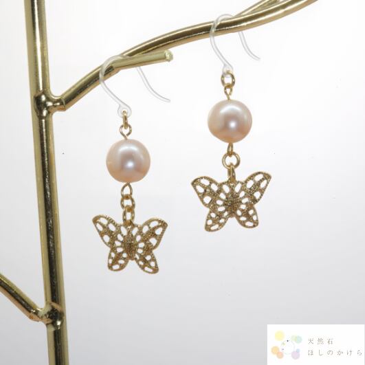 淡水パールとバタフライの癒しピアス/イヤリング(841)【癒し・悪縁を断つ・健康】