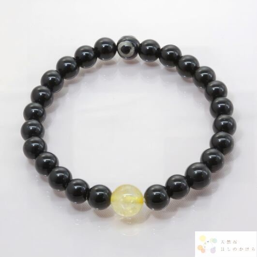 【三眼天珠と守護の煌めき】シトリンと黒水晶(モリオン)のブレスレット(844)