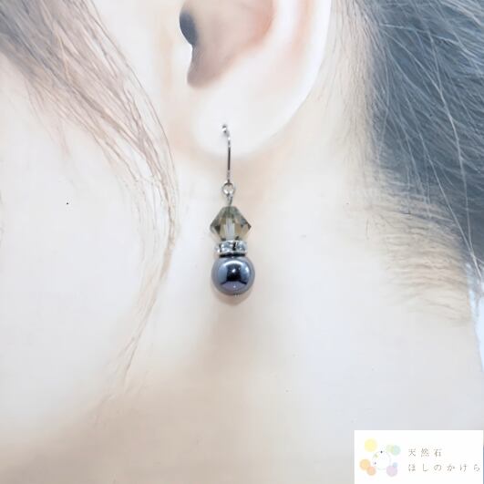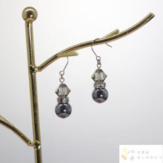 煌めくテラヘルツ鉱石とスワロフスキーのピアス/イヤリング(845)【血行促進・細胞の活性化・冷え性改善】