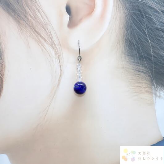 深く神秘的なラピスラズリの輝きと、きらめくスワロフスキー・クリスタルが織りなす、まるで夜空からこぼれ落ちたような美しいピアス/イヤリングです。