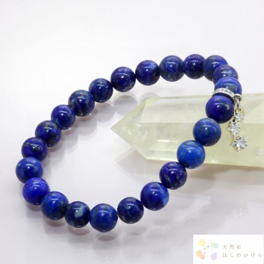 夜空の輝き ラピスラズリと三連スターブレスレット(PW854)【最高の幸運を呼び込む・チャンスを引き寄せる・歓喜】