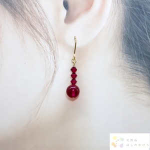 深みのある真紅のルビーと、夜空に煌めく星の輝きをイメージしたアシンメトリーデザインのピアスです。