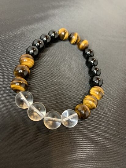 タイガーアイと黒水晶モリオンと水晶のブレスレット(11)