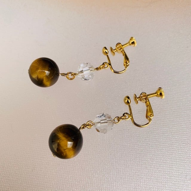 スワロフスキーとタイガーアイのイヤリング(MA13)【金運仕事運の向上・本質を見抜く・新しい挑戦をサポート】