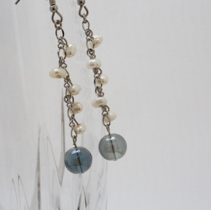 淡水パールとグリーンオーラのチタンピアス(MA79)【インスピレーションの向上・宇宙と繋がる・瞑想】