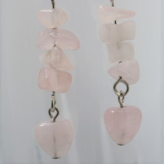 ハートが可愛いローズクォーツのチタンピアス(MA94)【健康・永遠の美しさ・美肌】