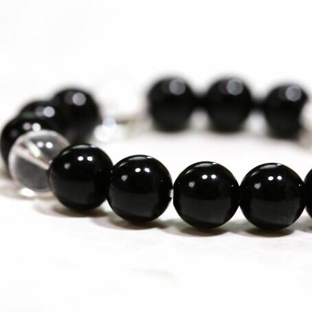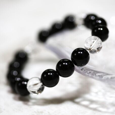 黒水晶(モリオン)と水晶の魔除けブレスレット(70)【魔除け・浄化・安定】