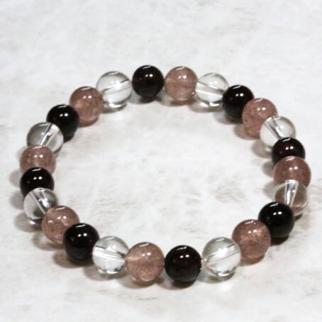 ストロベリークォーツと水晶・ガーネットのブレスレット(216)