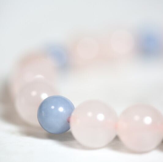 写真はイメージです。ブレスレットのサイズはローズクォーツの増減で調整します。天然石の数・デザインが若干異なる場合がございます。