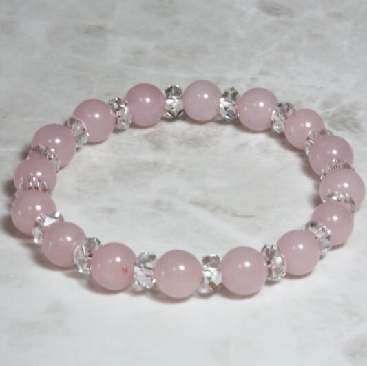 写真はイメージです。ブレスレットのサイズはローズクォーツ・ボタンカット水晶の増減で調整します。天然石の数・デザインが若干異なる場合がございます。