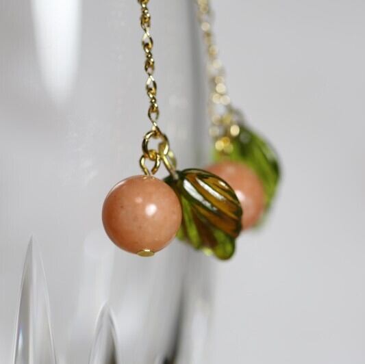 オレンジホワイトカルサイトの樹脂ピアス(MA115)【繁栄と成功・夢を実現する】