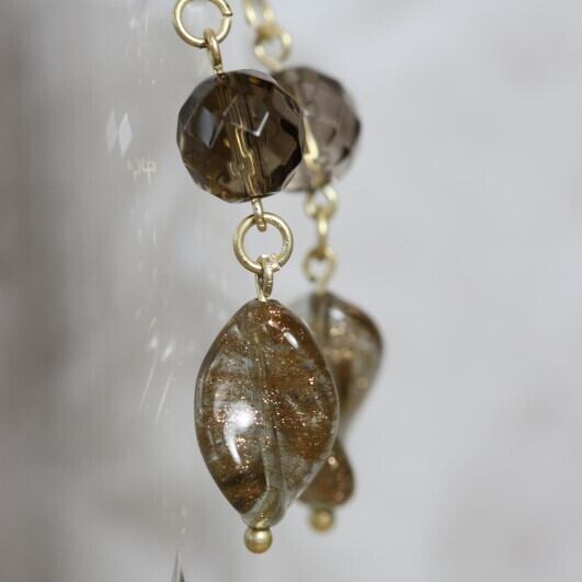 ベネチアンビーズとスモーキークォーツ(64面カット)の樹脂ピアス