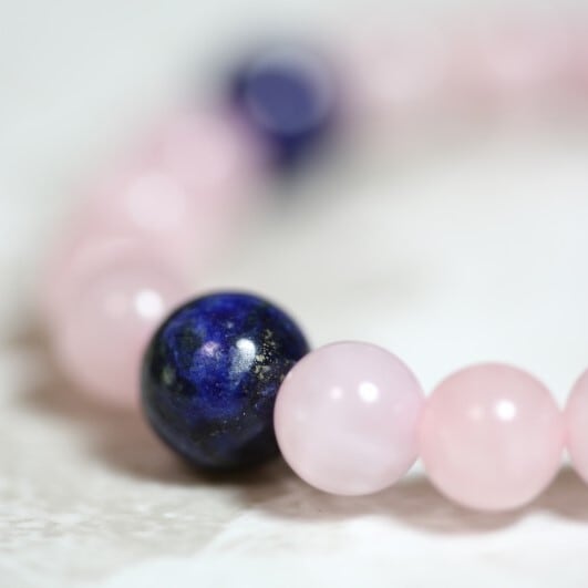 写真はイメージです。ブレスレットのサイズはローズクォーツの増減で調整しますので、天然石の数・デザインが若干異なる場合がございます。
