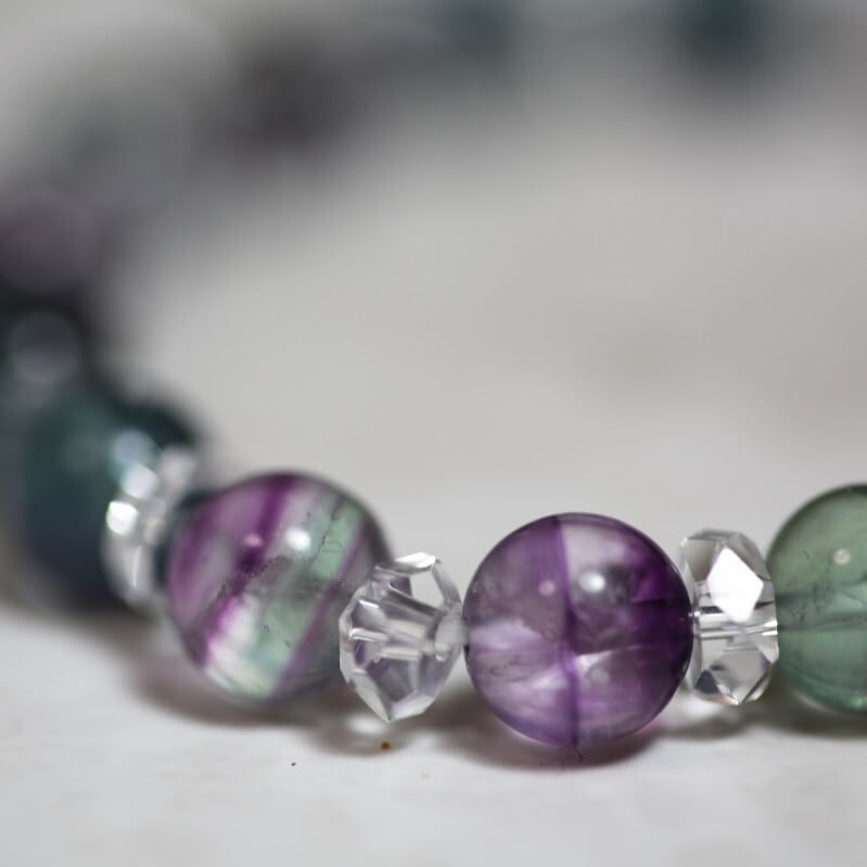 写真はイメージです。ブレスレットのサイズはフローライト・水晶の増減で調整します。天然石の数・デザインが若干異なる場合がございます。