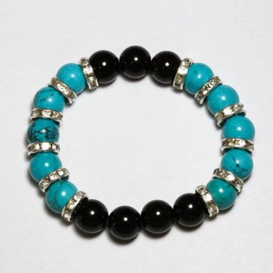 ターコイズ(トルコ石)と黒水晶モリオンのブレスレット(131)