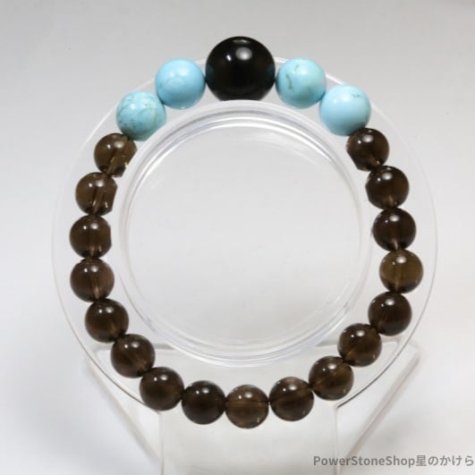 【数量限定】黒水晶モリオンとターコイズ・スモーキークォーツのブレスレット(344)