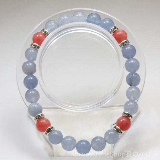 インカローズ(ロードクロサイト)とアクアマリンのブレスレット(361)