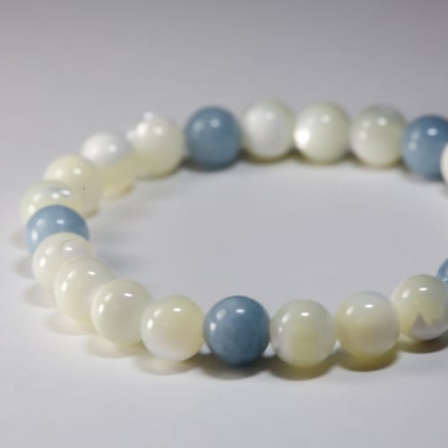 写真はイメージです。ブレスレットのサイズはマザーオブパールの増減で調整します。天然石の数・デザインが若干異なる場合がございます。