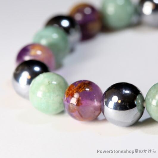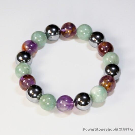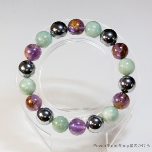 成功と繁栄のブレスレット スーパーセブン(アメジストエレスチャル)と翡翠・テラヘルツ鉱石のブレスレット(501)