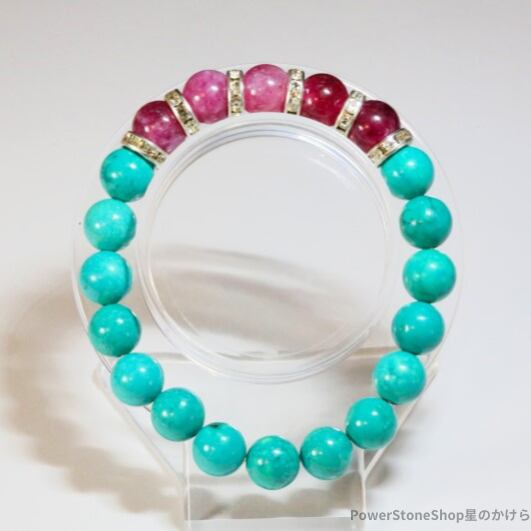 人生の守護石 ターコイズとピンクトルマリンのブレスレット(509)【守護石・夢や目標の達成をサポート・魅力を高める】