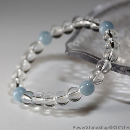 アクアマリンと水晶のブレスレット(523)【愛情・結婚・浄化・万能】