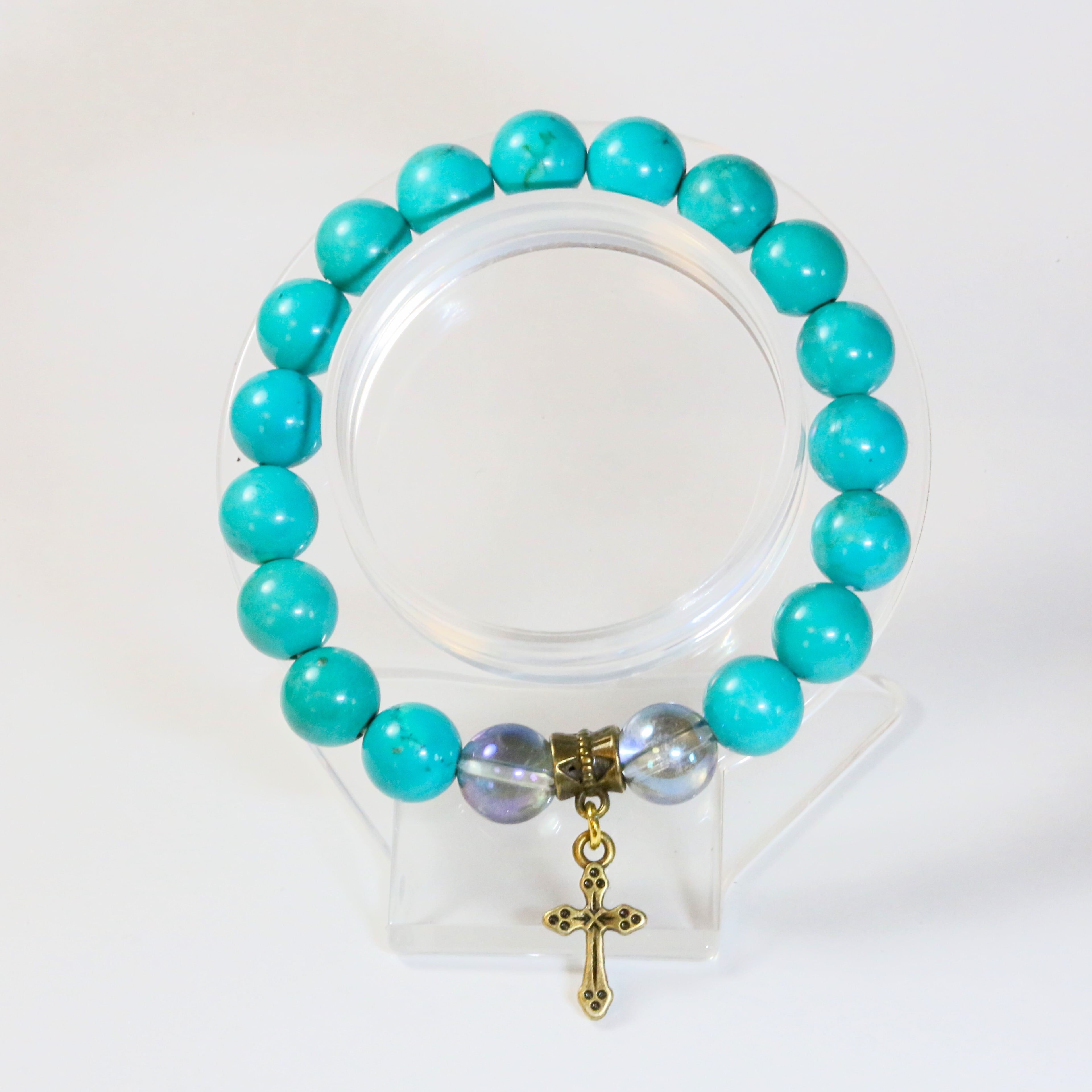 ターコイズとアクアオーラのブレスレット(537)【人生の守護石:旅のお守り・目標の達成】