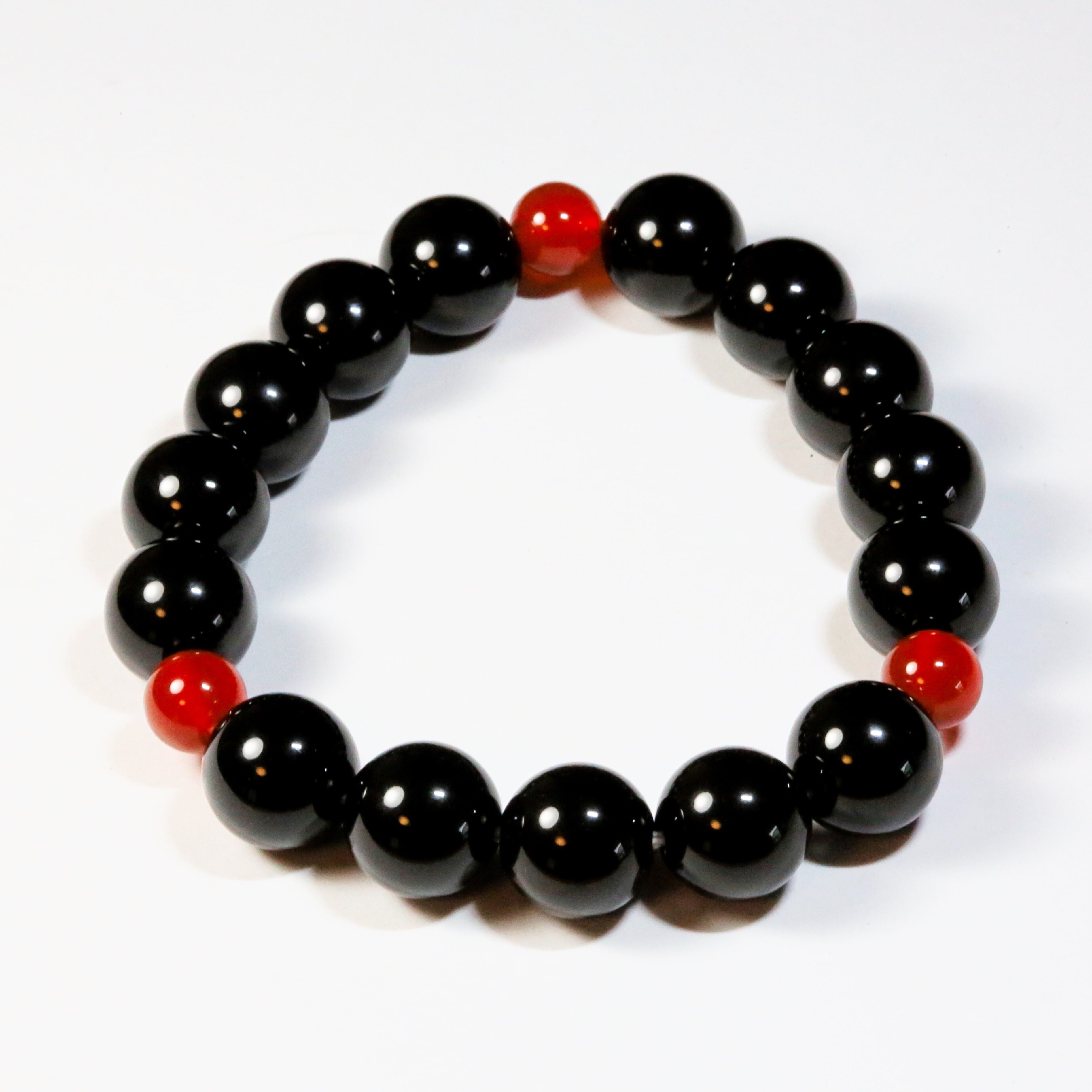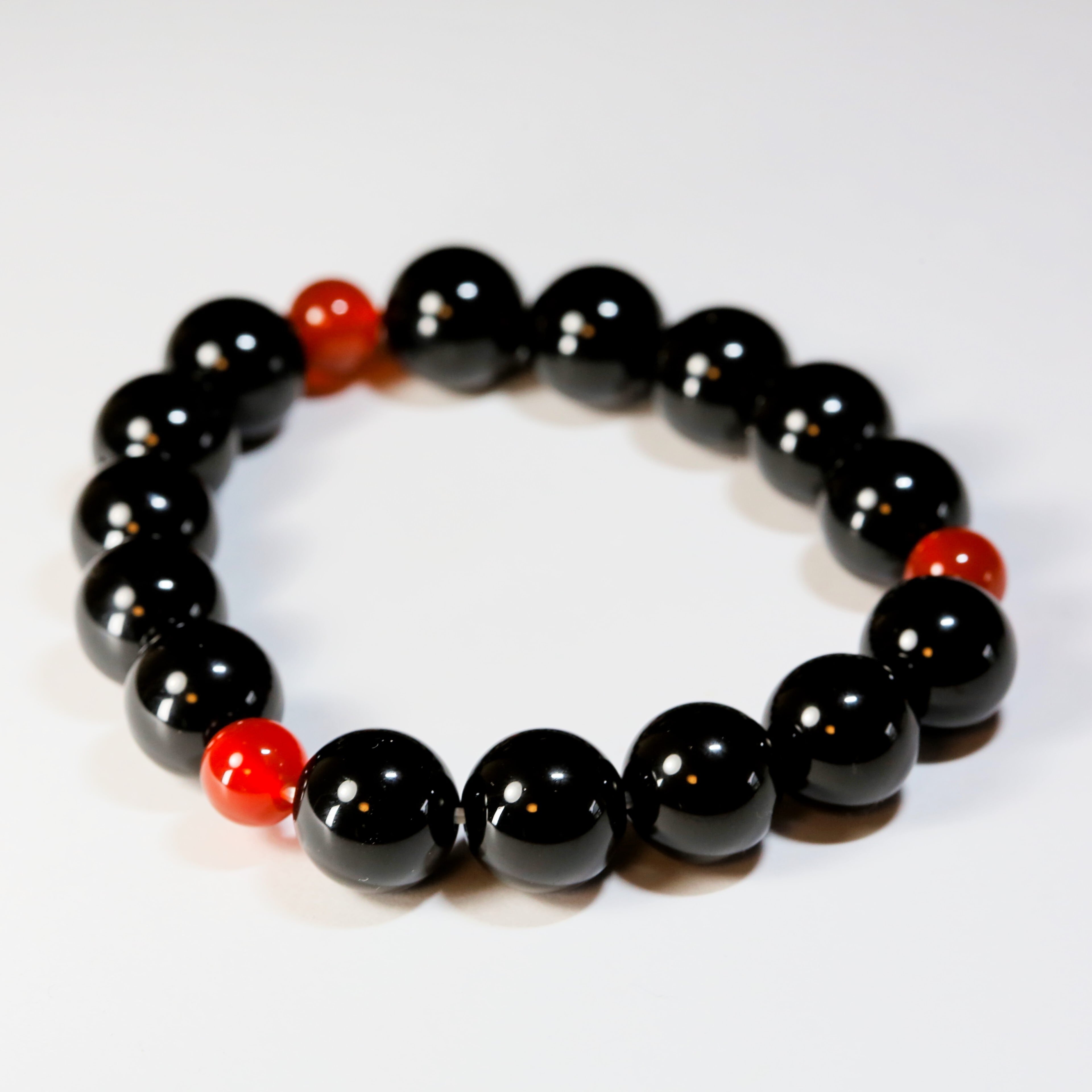黒水晶(モリオン)とカーネリアンのブレスレット(545)【ビジネス運・行動力の向上・邪気払い・カリスマ性の向上】