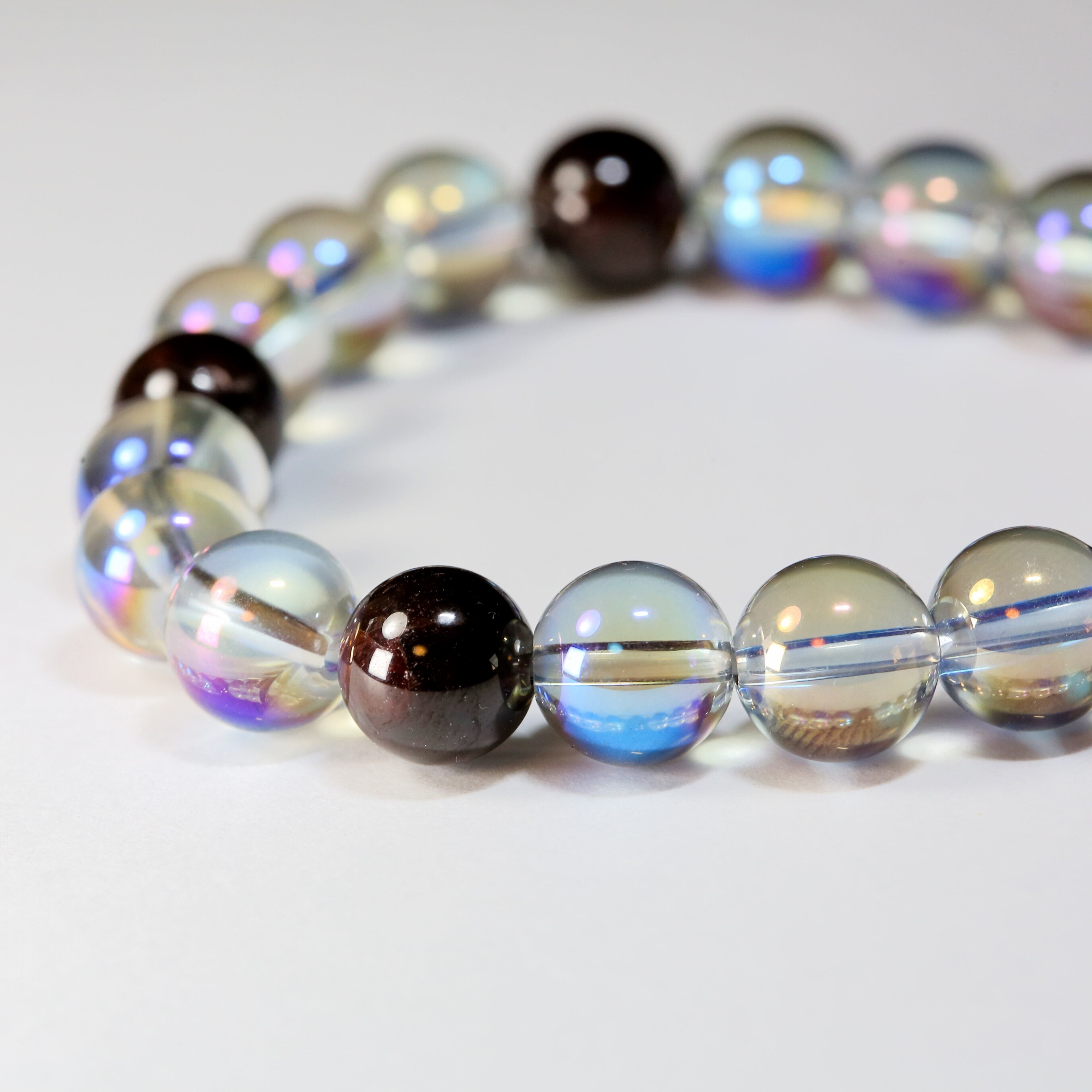 ★アクアオーラはマイナスエネルギーを浄化し感情の安定を保つ効果があり、ガーネットは成功や目標達成をサポートしてくれるとされています。このブレスレットを身につけることで、落ち着いて物事を考えることができ、インスピレーションやクリエイティブな思考が活性化され、積み上げてきた努力の成果をサポートをするブレスレットです。