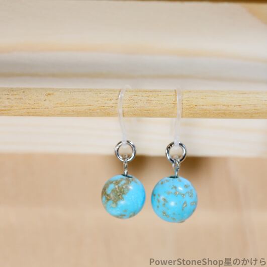 ターコイズは、交通安全や旅行のお守りとしても人気です。幸せな思い出をつなぐ旅行のお供として、また、夢や目標の達成を願って、このターコイズと樹脂ピアスと一緒に一歩踏み出してみませんか?