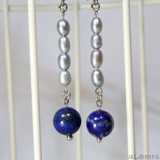★美しいブルーのラピスラズリと、上品で優雅な淡水パールが絶妙に組み合わさったピアス・イヤリングです。