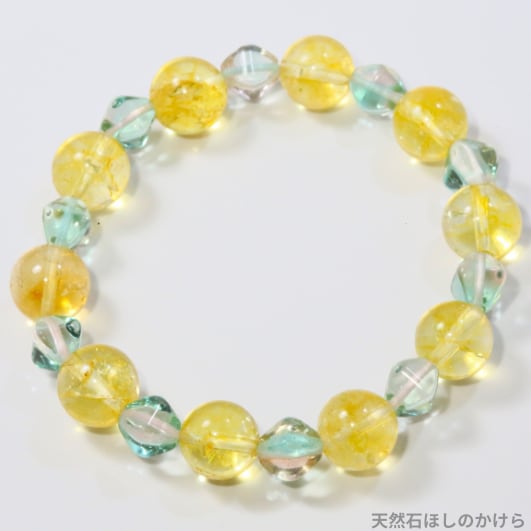 ★太陽の輝きをイメージさせるシトリンと可愛らしいチェコビーズ(ミックスローズ)が交互に織り交ぜられたブレスレットです。シトリンは太陽のエネルギーを持つと言われ、持ち主に幸運や活力をもたらすとされ、商売運や財運を上げ、持ち主に勇気や知恵を与え、仕事や勉強などで課せられた問題もクリアすると言われているパワーストーンです。