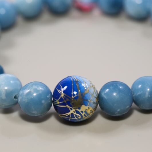 唐草模様のビーズを使ったラリマーとチェコビーズのブレスレット(654)【電磁波・魔除け・浄化】