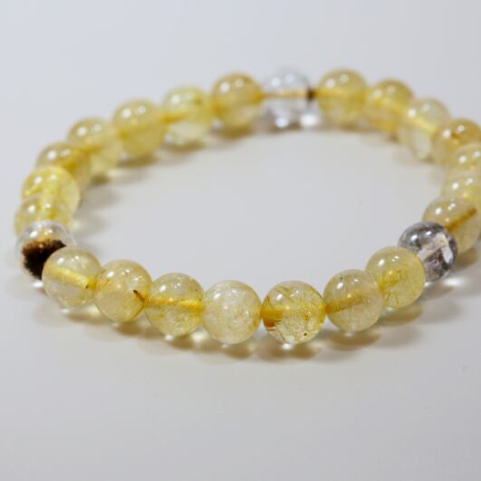 パワーの象徴三角形の形に配置したガーデンクオーツとゴールドルチルクォーツのブレスレット(657)【健康・財運向上・庭園水晶】
