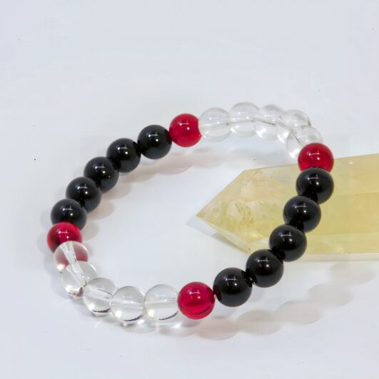 ルビーと水晶・黒水晶(モリオン)のブレスレット(717)【浄化・情熱・厄除け】