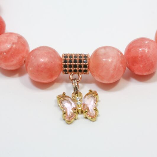 インカローズとバタフライチャームのブレスレット(728)【幸せな人生・愛・ソウルメイトを引き寄せる】