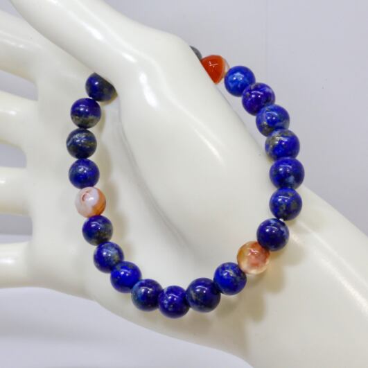 パワーの象徴三角形の形に配置したサードオニキスとラピスラズリのブレスレット(736)【魔除け・無限の可能性・幸運』