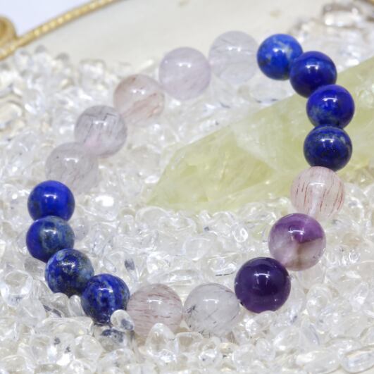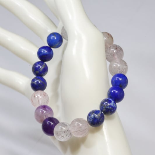 スーパーセブン(アメジストエレスチャル)とラピスラズリのブレスレット (739)【万能・開運・幸運】