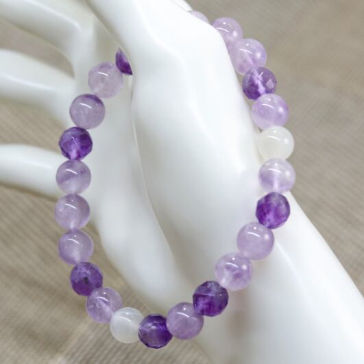 ムーンストーンとアメジストのブレスレット(521)【浄化・癒し・人間関係の改善】