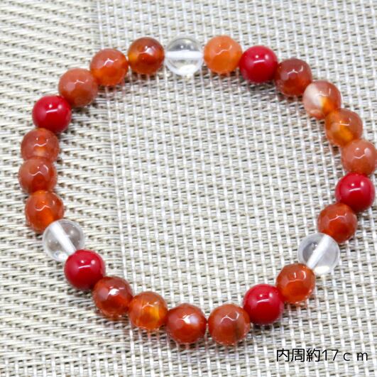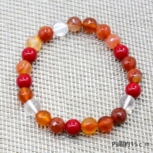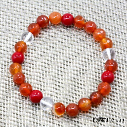 水晶とレッドコーラル(珊瑚)・カーネリアンのブレスレット(772)