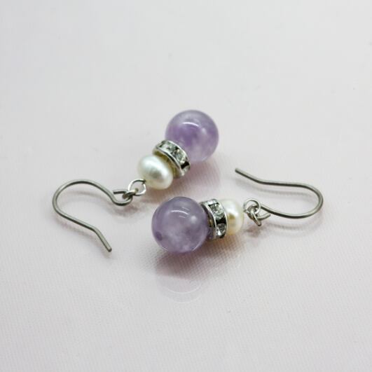 幸運を呼び込む、ラベンダーアメジストと淡水パールのピアス・イヤリング