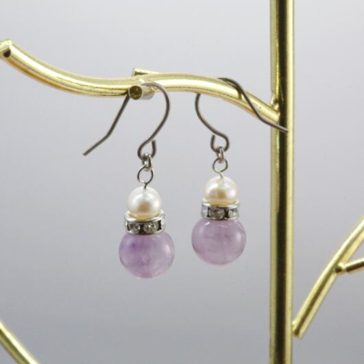 ラベンダーアメジストと淡水パールのピアス・イヤリング(779)【健康・真実を見抜く・子宝】