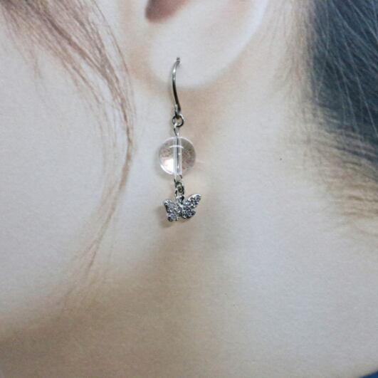 水晶とバタフライのピアス/イヤリング(783)【浄化・美容・幸運】